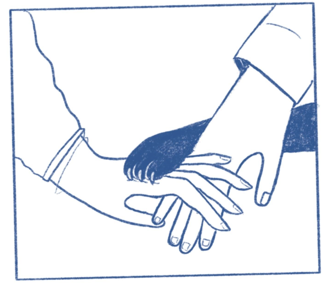 My visual approach: Two touching hands show a gentle loving relationship. The paw stacked on top gives it a sense of teamwork. And the claws just touching her hand represent the threat to be overcome.